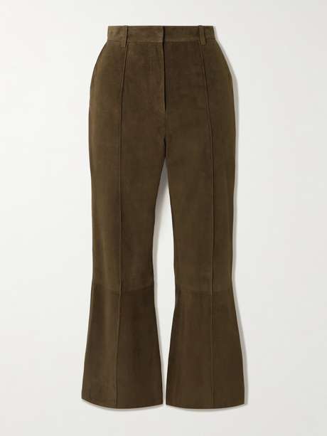 EXCLUSIVE AT NET-A-PORTER. Part of our exclusive capsule collection, Victoria Beckham's pants are made from panels of supple suede. They sit high on the waist and fall to flared, cropped legs traced with topstitching. Wear yours with the matching overshirt.