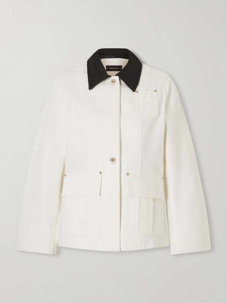 Wales Bonner redefines workwear through a refined lens with this 'Echo' jacket. Made from structured denim and accented with a smooth leather collar, it's detailed with utilitarian flap pockets and gold-tone rivet hardware. Wear yours with tailored shorts or streamlined pants.