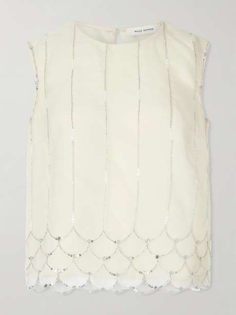 As the name suggests, Wales Bonner's top will be a triumph in your wardrobe. Made from silk-organza, it glistens with embellishments that are artfully scalloped towards the hem. Team it with the matching skirt.