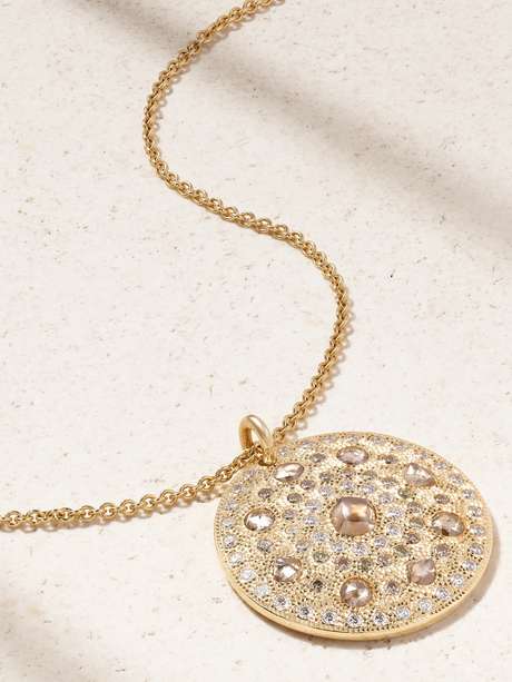 De Beers' necklace is part of the 'Talisman' collection, which pays homage to the "ancient appreciation" of rough diamonds that were once considered lucky charms. Cast from 18-karat gold, it's strung with a 'Medal' pendant that's hand-hammered using the label's 'serti poinçon' technique and set with 3.97-carats of diamonds, including both polished and raw ones.