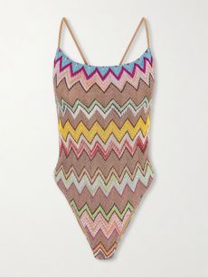 MISSONIMare striped metallic crochet-knit swimsuit