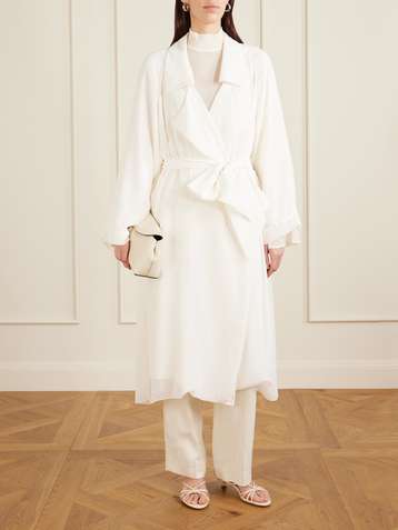Paris-trained and now London-based, Sharon Wauchob began her career at Louis Vuitton before founding her own label and presenting at Paris Fashion Week as a member of the Chambre Syndicale de la Couture. Her collections celebrate modern femininity and refined craftsmanship, reimagining iconic pieces each season with a sense of lightness and ease. Blending Savile Row precision with delicate hand-finished embroideries and French lace, her work captures timeless elegance — balancing strength and softness in equal measure.
