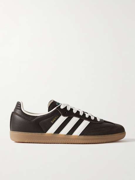 adidas Originals' 'Samba OG' sneakers debuted in the '50s as a low-profile soccer style - today you'll spot them off the field worn with everything from dresses to tailored pants. This pair is made from dark-brown textured-leather and detailed with the brand's signature '3-stripes' in contrasting off-white.