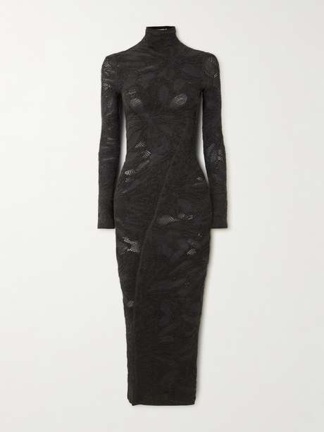 Alaïa's appreciation for the female form results in beautiful designs like this midi dress. Topped with an elegant turtleneck, it's made from silk-blend that's jacquard-knitted with florals and open, mesh-like panels that reveal slivers of skin. Underpin yours with a tonal slip for complete coverage.
