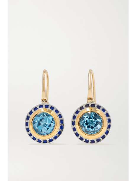 ALICE CICOLINI Tile Mini sterling silver, 22-karat gold, enamel and topaz earrings