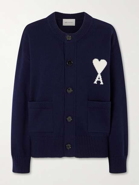 AMI PARIS Logo-embroidered wool and cotton-blend cardigan