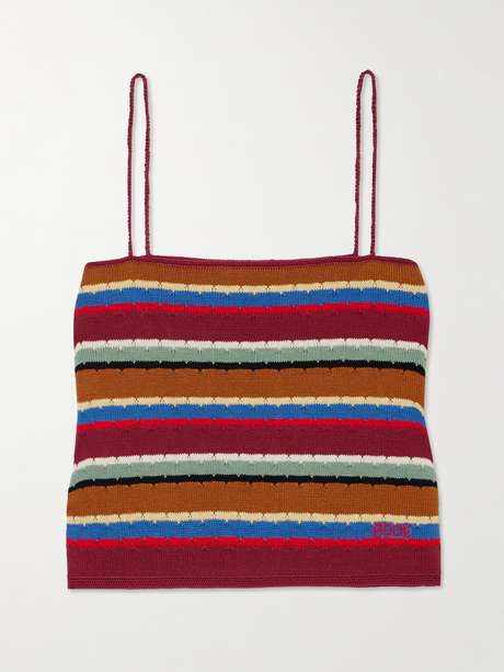 BODE's 'Starkey' camisole is knitted for a slim fit with a square neckline, suspended from braided straps. It's made from soft cotton with vibrant multicolored stripes that match the coordinating cardigan in our edit. Wear yours untucked so the embroidered logo is on show.