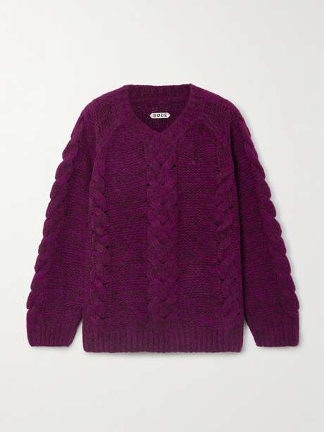 BODE's sweater is detailed with chunky cable-knit stripes. It's made from soft alpaca, mohair and silk-blend and has a relaxed fit with dropped shoulders.