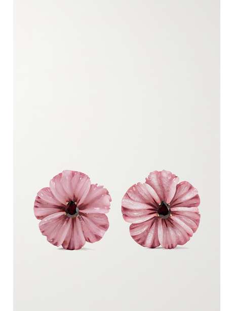 Casa Castro rigorously trains all its goldsmiths and stonecutters in-house, so its intricate earrings are flawlessly crafted. Resembling flowers in bloom, this pair is handmade from 18-karat gold with icy and pink quartzite petals and shimmering rhodolite centers. Showcase them at a gala by sweeping your hair into a neat bun.