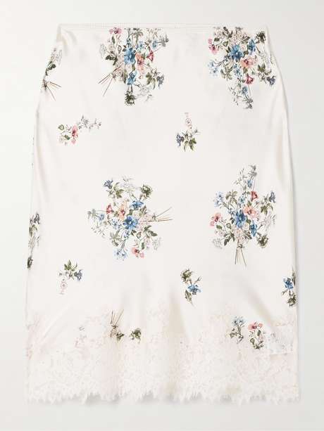 DÔEN Elowette lace-trimmed floral-print silk-satin skirt