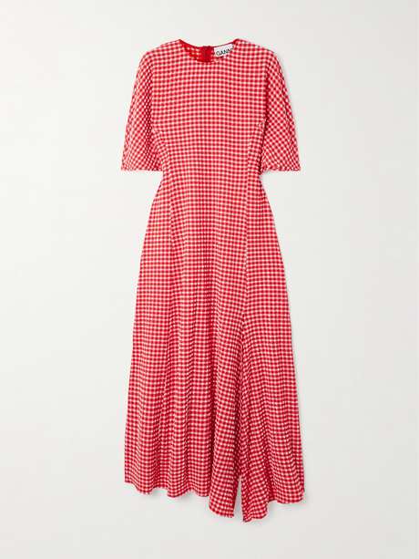 GANNI's dress is printed with red and white gingham checks, giving it such a sweet, summery feel. It's cut from lightweight recycled-seersucker and has streamlining darting and an asymmetric handkerchief hem.