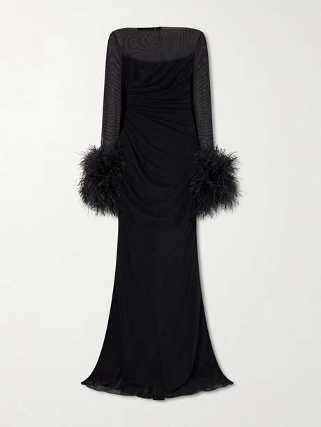 Gucci's gown radiates hints of old Hollywood glamour. Made from crepe de chine, it features a sheer outer layer finished with feathers at the cuffs and an inner lace layer depicting the 'GG' monogram. Wear yours with high heels and a clutch.