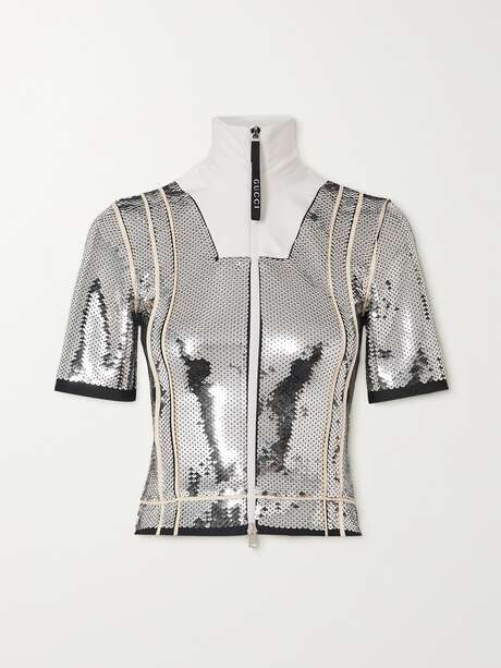 Gucci staged its Cruise '24 runway in Seoul and shared the fashion capital's forward-thinking style. This top is made from sequined stretch-jersey that's paneled with stretch-ponte across the collar - the supple, scuba-like textile creates a comfortable glove-like fit.