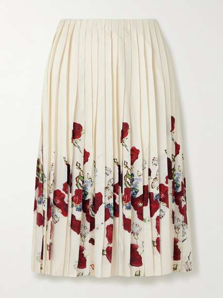 KHAITE's Resort '26 collection encourages you to experiment with pattern in fun, fresh ways. This 'Anya' skirt is made from satin-twill that’s sharply pleated through the midi hem, lightly distorting the colorful floral motif. Channel the brand's styling with a printed blouse and statement heels.