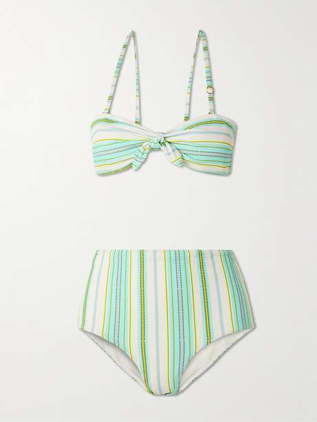 lemlem's bikini is made from quick-drying recycled fabric with plenty of stretch. Patterned in stripes, it's comprised of the brand's 'Ava' bandeau top with detachable straps and the 'Elsi' high-waisted briefs.