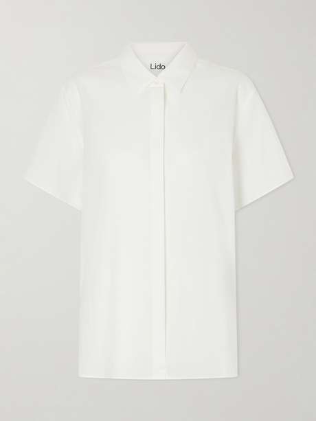 Lido’s shirt is cut from lightweight cotton in a relaxed fit with slightly dropped shoulders and short sleeves. It features a pointed collar and a covered button placket at the front. Ideal for warm weather, it can be styled with anything.