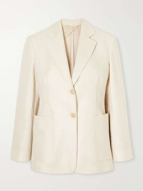 Max Mara is known for its timeless approach to tailoring. Made from linen, this blazer is single-breasted with a gently cinched waist. Style it with a silk scarf tied at the neck.
