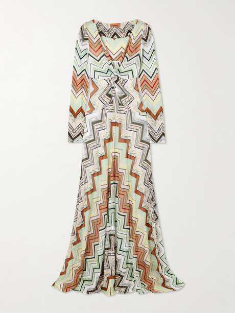 Missoni's dress exemplifies the label's eye for palette and print. It's been crochet-knitted in Italy in the signature striped style and has a plunging V-neckline that leads to a twisted front. The sweeping floor-length hem adds a hint of drama.