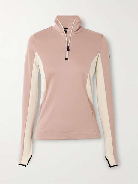 First-hand experience of the slopes equips Moncler Grenoble's team with the technical knowledge required to create effective skiwear. This base layer is cut from color-blocked panels of lightweight stretch-jersey for a close fit and has thumbholes to keep it perfectly in place. The half-zip collar gives you control over ventilation.