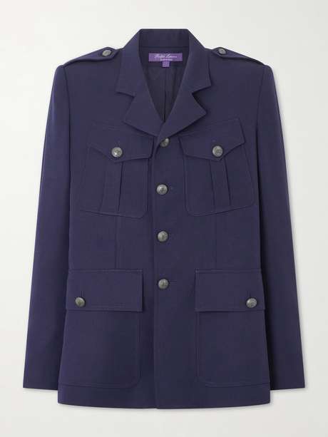 Ralph Lauren Collection's 'Annabeth' jacket draws on traditional nautical styles. It's been made in Italy from grain de poudre wool for a slim fit and has notch lapels, shoulder epaulettes and logo-engraved buttons.