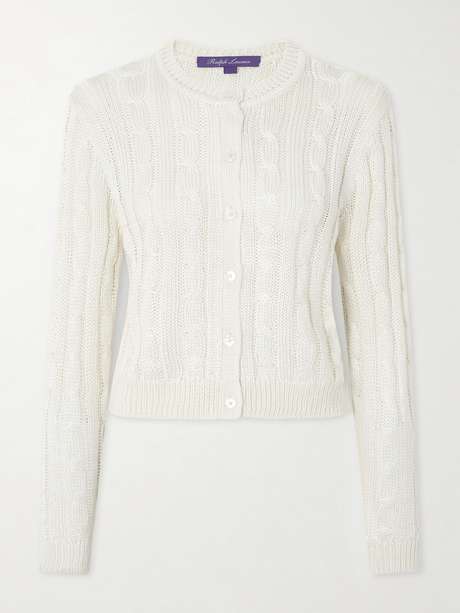 Ralph Lauren Collection's cardigan is nothing short of a classic. Cable-knitted from soft silk, it's traced with logo-detailed mother-of-pearl buttons that have been custom-developed for the brand. Wear yours with skirts, jeans or relaxed tailoring.