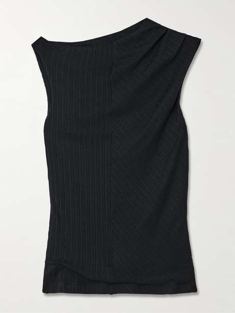 RÙADH Toga draped ribbed organic cotton and modal-blend top