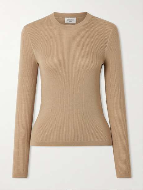 SAINT LAURENT Ribbed-knit wool, cashmere and silk-blend top