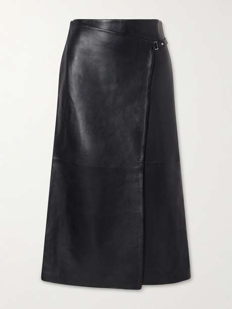 ST. AGNI Leather midi wrap skirt