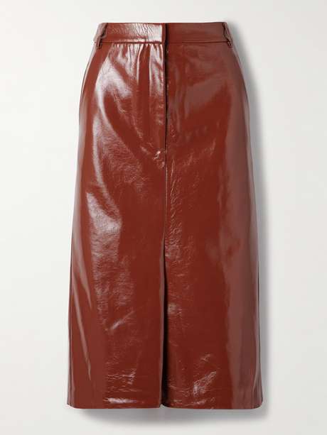 Tibi's skirt is made from glossy synthetic fabric that has a lightly crinkled finish. It's designed to sit high on the waist and falls to a split midi hem. Style yours with everything from simple mules to low-top sneakers.