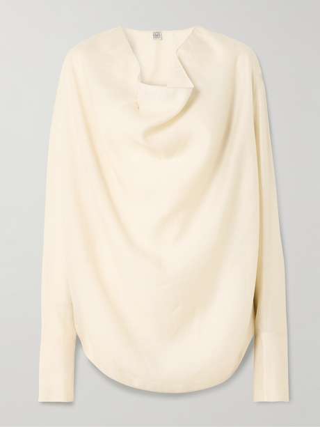 TOTEME's emphasis on fabric and fit result in elegant pieces like this blouse. Cut from fluid Lyocell-blend, it has a draped cowl neckline and subtly flared cuffs. Tuck yours into tailoring and skirts alike.