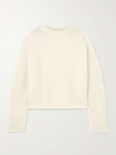 Bundling up in TOTEME's sweater will make cold days so much better. It's rib-knitted from fuzzy mohair-blend in a relaxed fit with dropped shoulders. Wear yours with jeans or track pants.