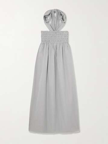 Ribbed stretch-knit and plissé halterneck maxi dress