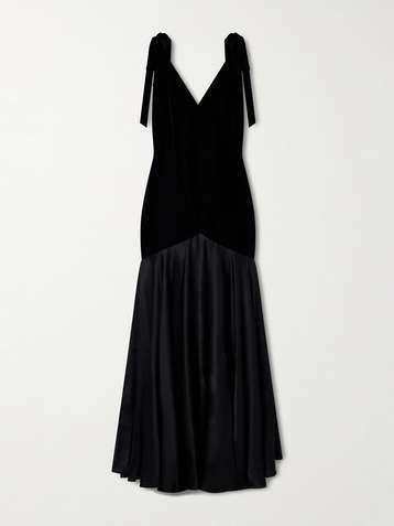 Tie-detailed velvet and silk-satin gown