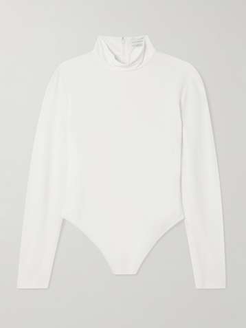 Lace-trimmed ruched stretch recycled-jersey bodysuit