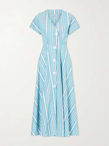 Cassandra striped cotton-poplin midi dress