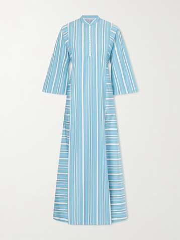 Rachel striped cotton-poplin kaftan
