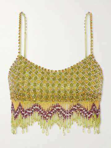 Mia cropped bead-embellished fringed silk top