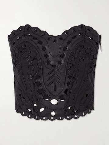 Marlowe floral-appliquéd leather top