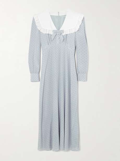 Alessandra Rich's bow-adorned dress is perfect for afternoon teas or garden parties. It's cut for a slender fit from silk crepe de chine, patterned with timeless polka dots and has pretty blouson sleeves. The ruffled Peter Pan collar adds an elegant contrast.