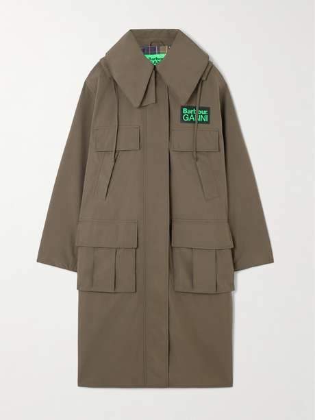 Barbour's collaboration with GANNI makes a return for a fourth year running, balancing practicality and directional design. Made from waterproof shell, it has a detachable ruffled collar and tartan elbow patches that mirror the lining. Use the cargo pockets to keep small essentials close at hand.