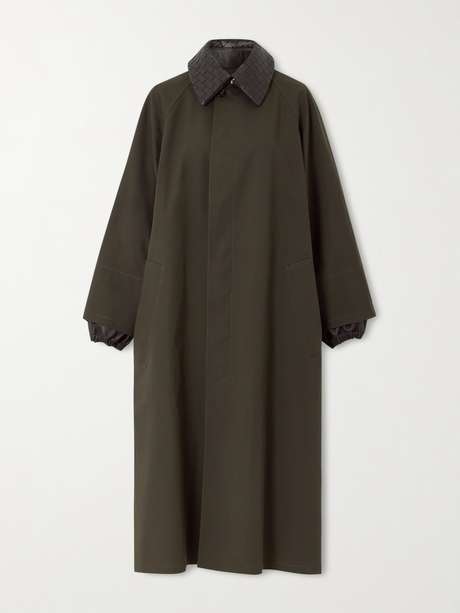 BOTTEGA VENETA Intrecciato leather-trimmed cotton-blend trench coat
