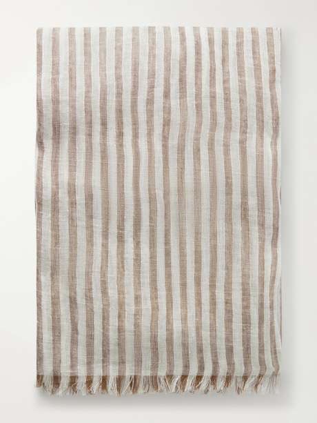 BRUNELLO CUCINELLI Fringed striped linen-blend scarf