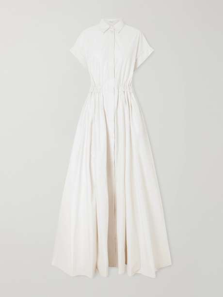 Brunello Cucinelli’s dress is cut from lightweight cotton-poplin and features an elasticated waistband that cinches the waist, creating soft pleats along the flowing, floor-length skirt for an effortlessly elegant silhouette.