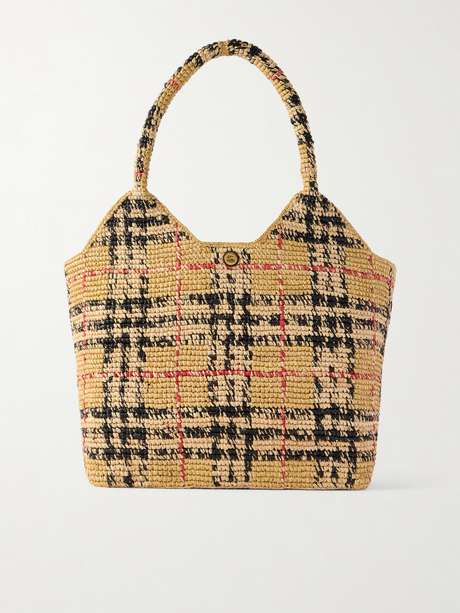 BURBERRY Margate checked woven raffia tote