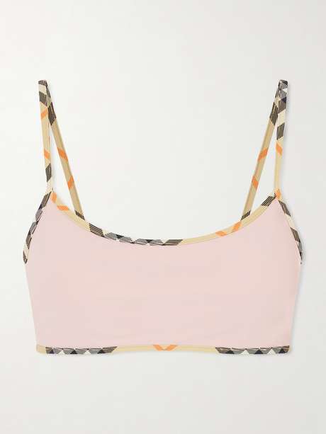 The checked trims on Burberry's bikini top make it instantly recognizable, especially when worn with the matching briefs. Cut from stretch fabric, it has a sporty scooped neckline and ties at the back to adjust the fit.