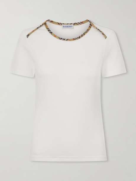 BURBERRY Stephanie tartan-trimmed stretch-cotton jersey T-shirt