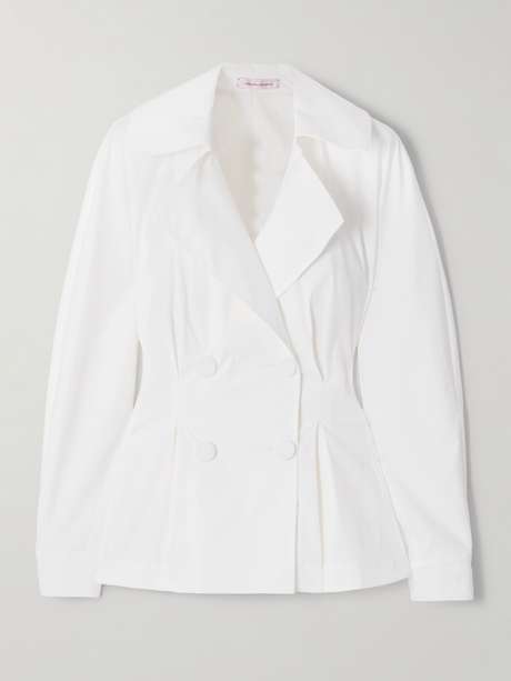 CAROLINA HERRERA Double-breasted pleated stretch-cotton poplin shirt