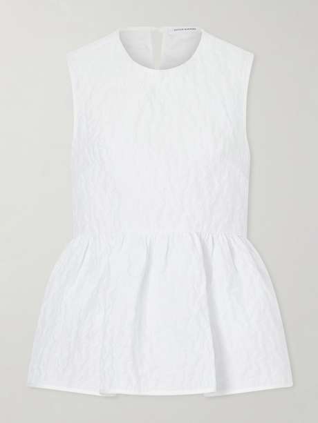 CECILIE BAHNSEN Margueritte embroidered cotton-blend cloqué peplum top