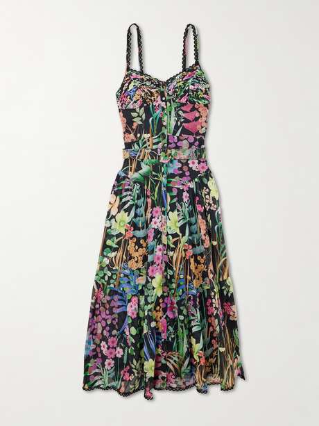 CHARO RUIZ Cael belted pleated paneled lace-trimmed floral-print cotton-blend voile midi dress
