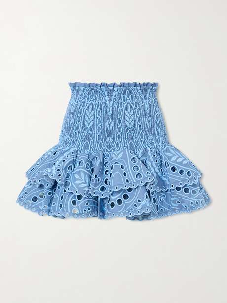 Charo Ruiz's clothing is imbued with a carefree spirit. This 'Nerissa' mini skirt is made from broderie anglaise cotton-blend with a shirred waist and fluttery tiered hem.